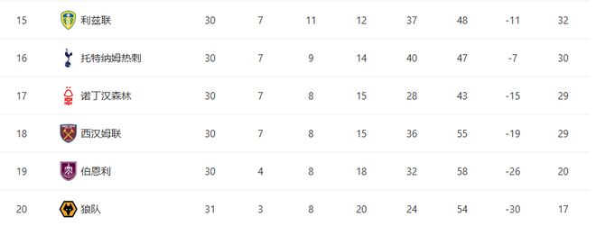 最终,比分定格在2-2,狼队客场大爆冷门拿下1分,不过,从积分榜形势来看,这场奇迹般的平局依然难以改变狼队的命运。截至目前,狼队在31轮联赛中仅取得3胜8平20负的战绩,只拿到17分,继续排名英超倒数第一。尽管他们近期状态有所回暖,接连击败阿斯顿维拉、利物浦,又逼平布伦特福德,连续3场保持不败,但赛季前期挖下的巨大“坑”,几乎已经让保级希望变得微乎其微。如果这股状态能早来两个月,也许结局会完全不同。
